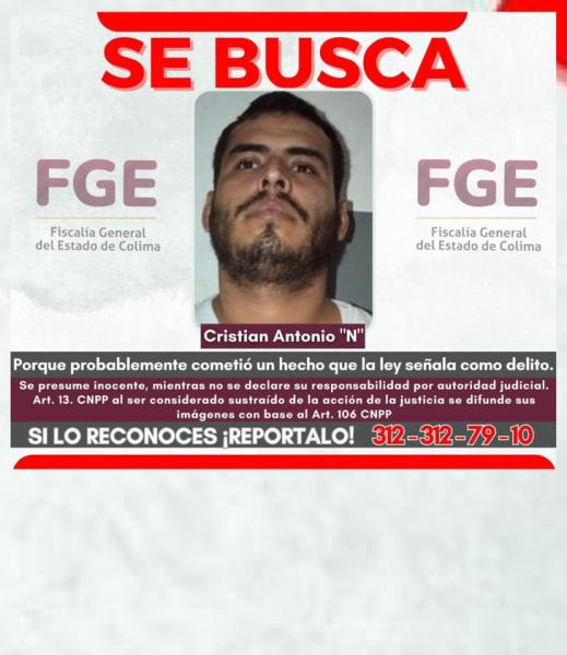 Colima, México, Avanzada (25/09/2023).- La Fiscalía General del Estado de Colima (FGE) está solicitando la colaboración de la comunidad para localizar a Cristian Antonio “N”, quien...