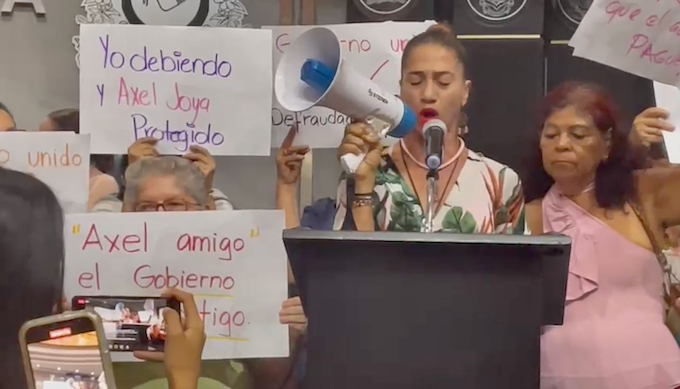 Colima, México, Avanzada (02/06/2023).- Personas defraudadas por la empresa Axe Capital, propiedad de Axel Joya, protestaron en el Congreso del Estado, tras la negativa del Poder...