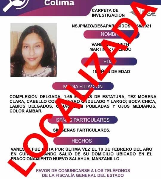 Colima, México, Avanzada (24/02/2021).- Yaritza Itzel Ochoa Romero tiene 17 años de edad, salió de su domicilio ubicado en la colonia La Cima del Progreso de...