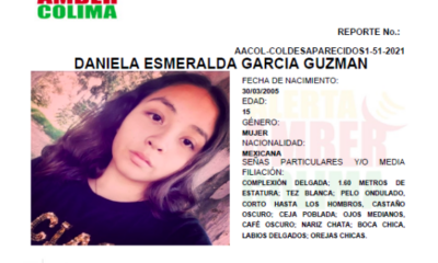 Colima, México, Avanzada (25/02/2021).- Daniela Esmeralda García Guzmán tiene 15 años de edad y desapareció el 24 de febrero de 2021. Daniela salió de su domicilio...