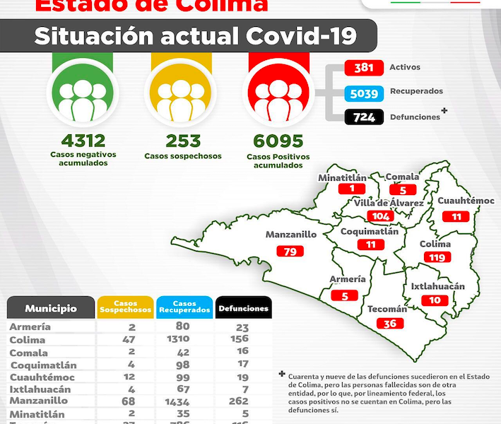 Colima, México, Avanzada (27/10/2020).- Los municipios de Colima, Manzanillo y Villa de Álvarez concentran el mayor número de casos por Covid-19 en la entidad, sin embargo,...
