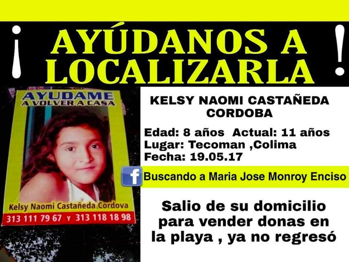 Colima, México, Avanzada (18/04/2020).- El 19 de mayo de 2017, una pequeña niña de 8 años de edad, un metro de estatura y de nombre Kelsy...