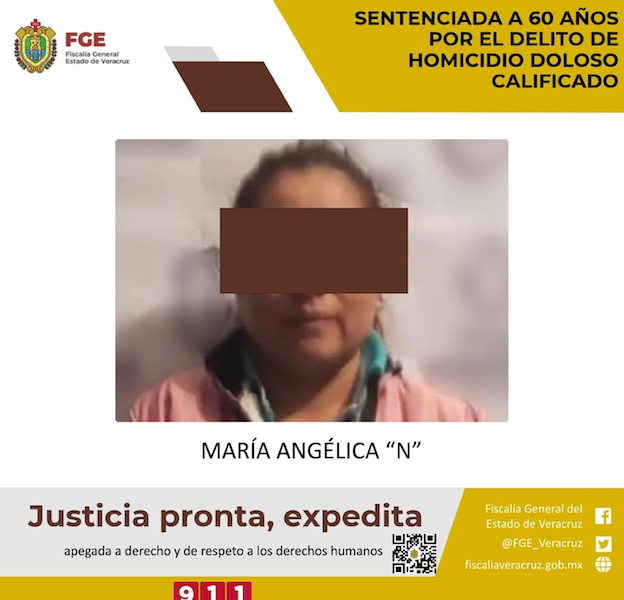Veracruz, México, Avanzada (12/07/2022).- María Angélica “N”, expresidenta municipal de Mixtla, en Veracruz, fue sentenciada por un juez a expiar 60 años de prisión por asesinar...