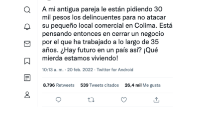 Colima, México, Avanzada (22/02/2022).- El columnista nacional y director de orquesta, Román Revueltas denunció en sus redes sociales que presuntos delincuentes están cobrándole 30 mil personas...
