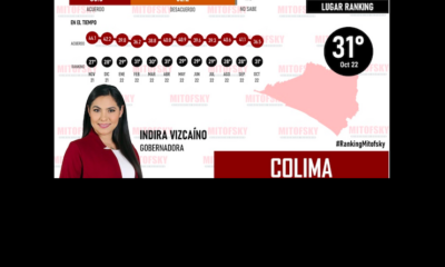 Colima, México, Avanzada (18/11/2022).- En un mes, en el periodo de septiembre a octubre de 2022, la gobernadora Indira Vizcaíno Silva perdió 4.6 puntos porcentuales de...