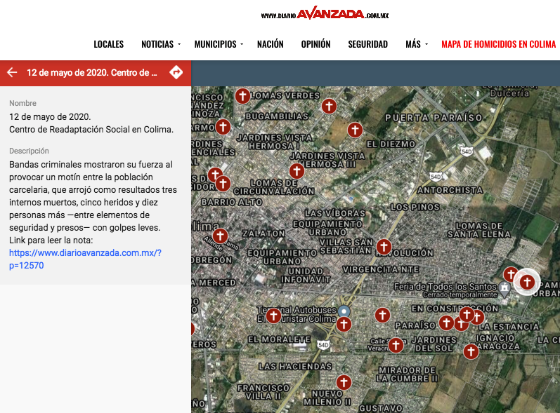 Colima, México, Avanzada (19/05/2020).- Colima tiene el primer lugar en homicidios dolosos por cada 100 mil habitantes desde que el gobernador José Ignacio Peralta Sánchez inició...