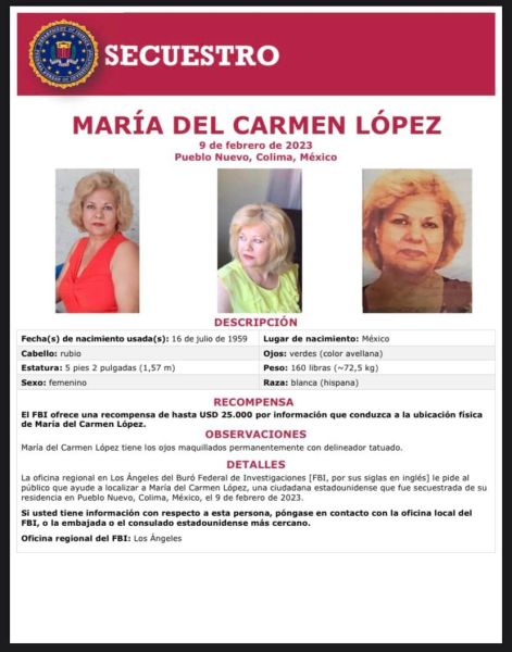 Colima, México, Avanzada (10/02/2024).- A un año del secuestro de María del Carmen López, de 63 años, en su propiedad en Pueblo Nuevo, Colima, la incertidumbre...
