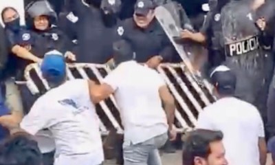 Colima, México, Avanzada (13/09/2024).- El miércoles por la tarde, un policía estatal propinó un toletazo en la espalda de un hombre que se manifestaba afuera del...