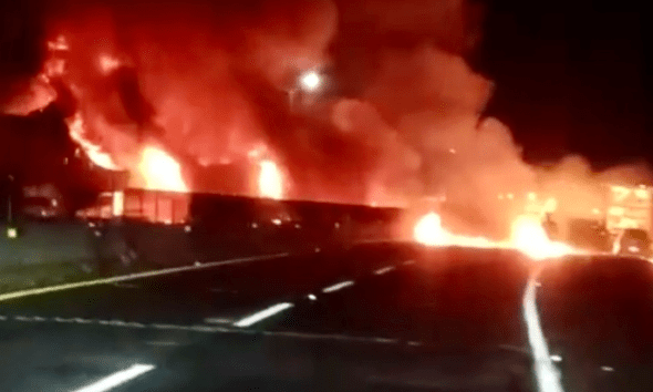 Volcadura e incendio de pipa con material peligroso obligan al cierre de la Guadalajara–Colima